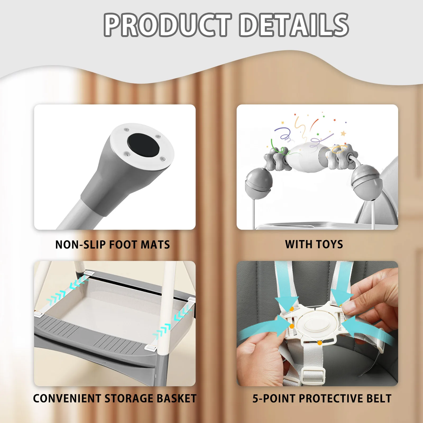 HIGH QUALITY MATERIAL – Made of thickened, heavy-duty stainless steel for durability, shock absorption and weight bearing capacity. Seat made of PP material provides fatigue resistance and maximum comfort. Solid construction provides your baby with comfort, stability and ergonomics.